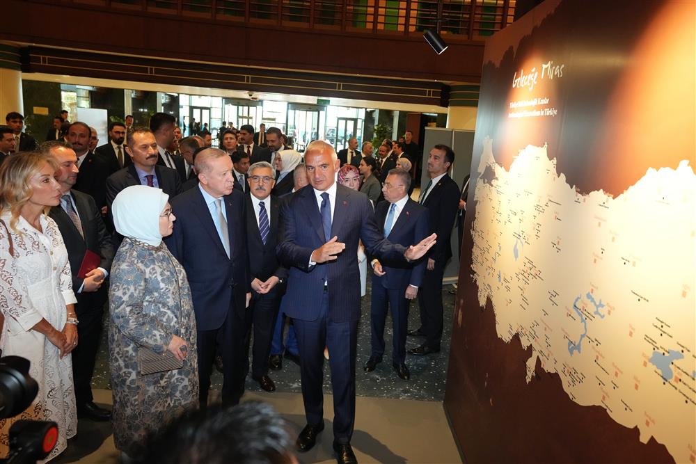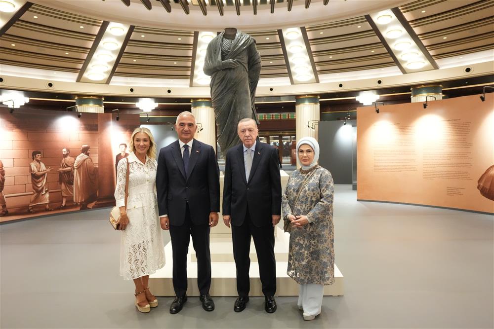 Cumhurbaşkanı Recep Tayyip Erdoğan ile Emine Erdoğan, açılış öncesinde Kültür ve Turizm Bakanı Mehmet Nuri Ersoy ve eşi Pervin Ersoy ile birlikte sergiyi gezdi.